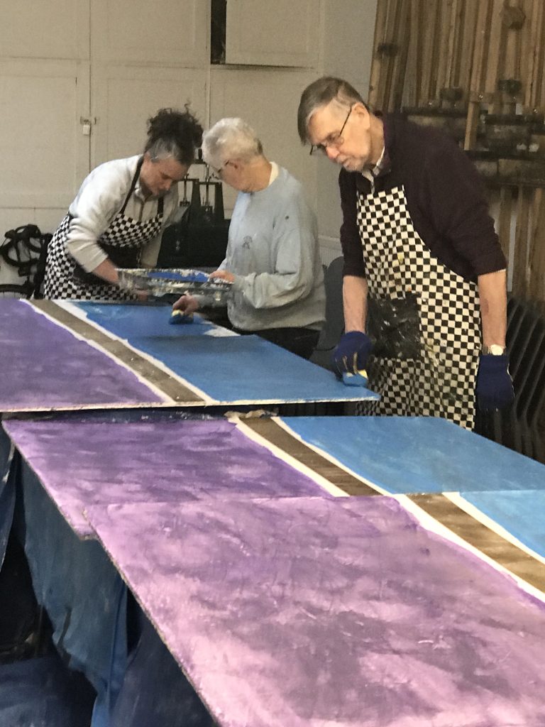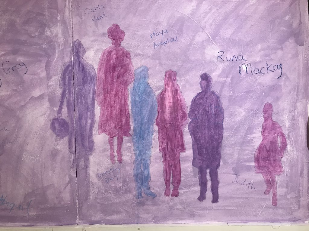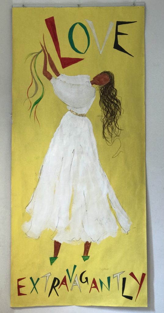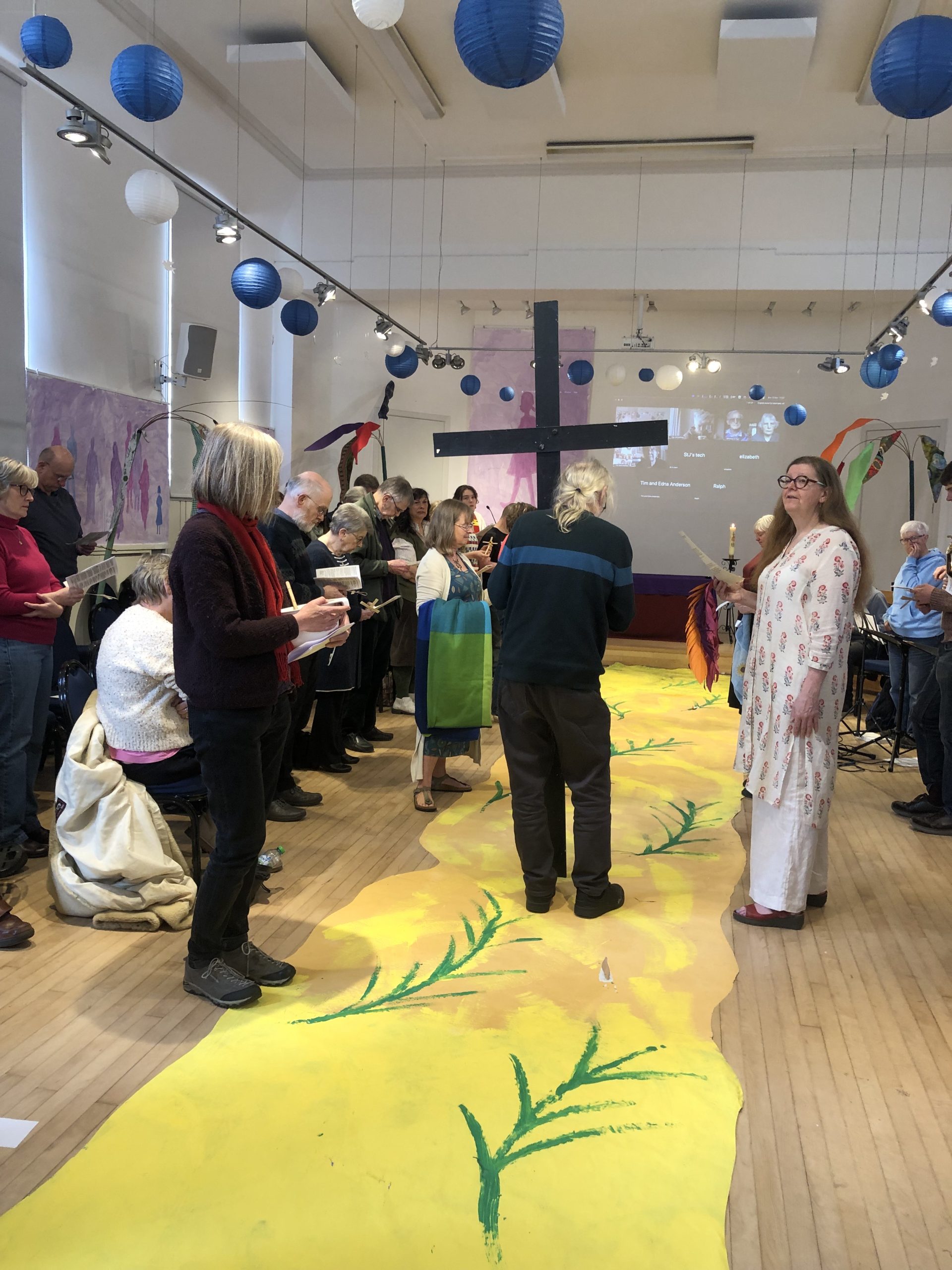From 2000-2007 Carol worked voluntarily, alongside rector Steve Butler and others to help to grow and facilitate the arts in worship at St. James. From 2007-2011 she was employed through the Soul Marks Trust to continue this work. A continual pattern of transforming the environmental worship space through each of the liturgical seasons – Lent, Easter, Pentecost, Harvest, Advent, and Epiphany – developed. All ages of the congregation were encouraged to join in the creative workshops to change the space. These were facilitated by Carol and other members of the worship planning team. Artwork was also often created during and as part of the worship.